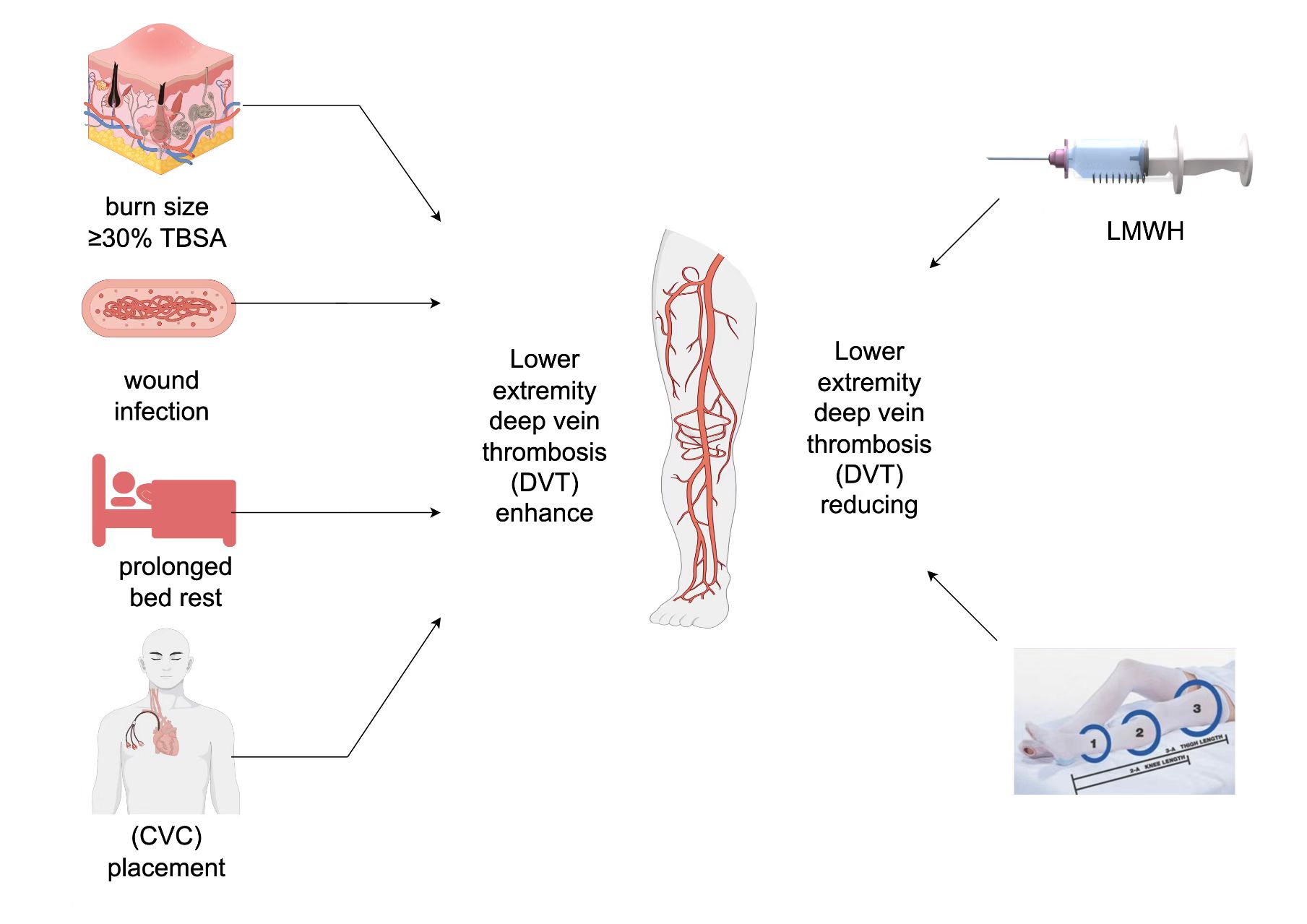 Catheter site stratification: Clarify thrombotic risk differences between internal jugular and femoral vein catheterization.Multidisciplinary collaboration: Establish personalized anticoagulation protocols through coordinated efforts among burn surgery, vascular surgery, and pharmacy teams.