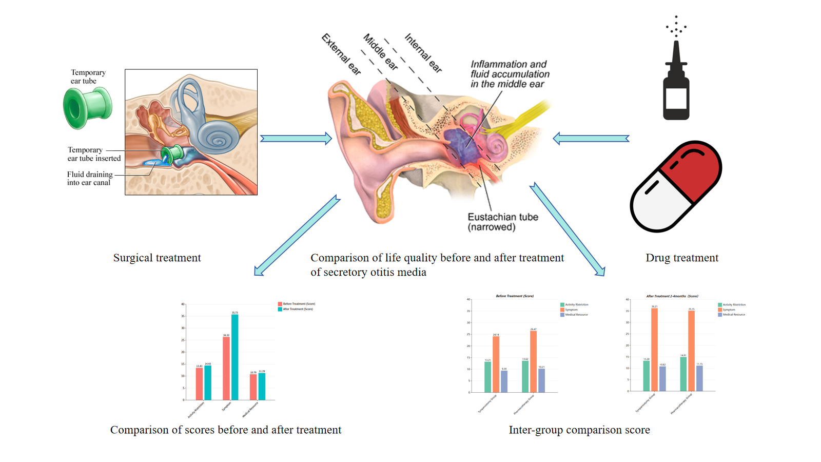 This study employed a questionnaire-based method for data collection from enrolled participants. We recruited eligible individuals diagnosed with chronic secretory otitis media at the Department of Otolaryngology, Chaohu Hospital Affiliated to Anhui Medical University. All participants provided written informed consent after being fully informed about the study. Initial questionnaires were administered before treatment, with follow-up questionnaires conducted 2-4 months post-treatment. Comparative analysis was performed between pre- and post-treatment questionnaire results. Based on treatment modalities, patients were divided into two groups: tympanostomy with tube insertion group and pharmacotherapy group, with outcomes compared between these groups.